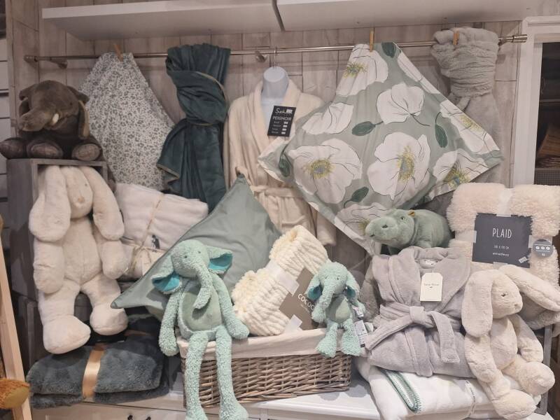 Des “Ambiances” chaleureuses et des “Cotonnades” de qualité, sélectionnées avec soin, composent l’univers de la boutique. Elles s’appuient sur des marques reconnues dans l’univers de la décoration et du cadeau, telles que Comptoir de Famille, Sylvie Thiriez, Durance, Amadeus, Sensei Maison, Vent du Sud, ainsi que de jeunes enseignes prometteuses comme Kiub ou Poule House.